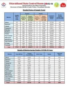 उत्तराखंड : आज प्रदेश के 7 जिलो में कोई कोरोना मरीज नही मिला, वही आज दो मरीजों की मौत, जानिए खबर