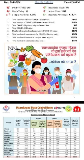 उत्तराखंड: आज प्रदेश में कोरोना से एक भी मौत नही , आज मिले 305 मरीज