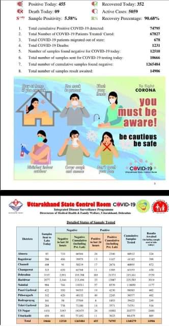 उत्तराखंड : आज प्रदेश में मिले 455 कोरोना मरीज, जानिए खबर