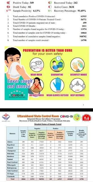 उत्तराखंड: आज प्रदेश में 349 कोरोना मरीज मिले , जानिए खबर