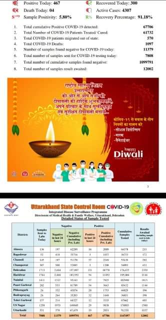 उत्तराखंड : आज प्रदेश में 467 कोरोना मरीज मिले, जानिए खबर