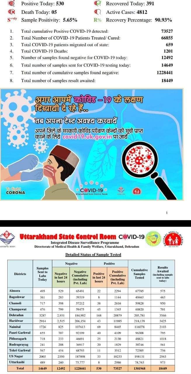 उत्तराखंड : आज प्रदेश में 530 से अधिक कोरोना मरीज, जानिए खबर