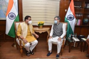 देहरादून | मुख्यमंत्री पुष्कर सिंह धामी ने नई दिल्ली में केन्द्रीय मंत्री, रेलवे, दूरसंचार, इलेक्ट्रॉनिक्स एवं सूचना प्रौद्योगिकी अश्विनी वैष्णव से शिष्टाचार भेंट की। मुख्यमंत्री ने केंद्रीय मंत्री से उत्तराखण्ड से संबंधित विभिन्न रेल परियोजनाओं पर विस्तार से चर्चा की।  मुख्यमंत्री ने रूड़की देवबन्द परियोजना में  उत्तराखण्ड राज्य द्वारा वर्तमान तक दिये गये रू0 296.67 करोड़ की धनराशि के अंशदान को पर्याप्त मानते हुए परियोजना के अवशेष कार्यों का वित्त पोषण रेल मंत्रालय, भारत सरकार तथा उत्तर प्रदेश राज्य द्वारा किये जाने का अनुरोध किया।  मुख्यमंत्री ने कहा कि सामरिक उद्देश्य और सीमांत जनपदों के विकास की आवश्यकता को देखते हुए  टनकपुर बागेश्वर रेलवे लाईन का नैरोगेज की बजाय ब्राडगेज लाईन का सर्वे किया जाए। मुख्यमंत्री ने इसके फाईनल लोकेशन सर्वे की स्वीकृति के साथ ही  ऋषिकेश- उत्तरकाशी रेल लाईन निर्माण की स्वीकृति का अनुरोध किया। मुख्यमंत्री ने हरिद्वार- देहरादून रेलवे लाईन का दोहरीकरण के लिए 1024 करोङ रूपए की डीपीआर के साथ ही डोईवाला से ऋषिकेश हेतु सीधी रेल सुविधा उपलब्ध कराने के लिए रायवाला रेलवे स्टेशन पर डायवर्जन लाईन का निर्माण को जल्द स्वीकृति देने का भी आग्रह किया। केन्द्रीय मंत्री ने अपने अधिकारियों को इन दोनों प्रस्तावों पर आवश्यक कार्यवाही करने के निर्देश दिए। मुख्यमंत्री ने कहा कि ऋषिकेश-कर्णप्रयाग रेलवे लाईन प्रधानमंत्री जी की उत्तराखण्ड को बङी देन है। इस पर तेजी से काम चल रहा है। मुख्यमंत्री ने सुझाव दिया कि ऋषिकेश-कर्णप्रयाग रेलवे लाईन हेतु तैयार किये जा रहे अवस्थापना सुविधाओं के सृजन में ही सौर ऊर्जा उत्पादन की क्षमता के निर्माण की सम्भावनाओं पर विचार किया जाना चाहिए।  मुख्यमंत्री ने धामपुर काशीपुर (वाया जसपुर) रेल लाईन के निर्माण और दिल्ली से रामनगर के लिये  कॉर्बेट इको-एक्सप्रेस की जल्द स्वीकृति का भी आग्रह किया।  मुख्यमंत्री ने भारत नेट फेज 02 की सैद्धान्तिक मंजूरी दिये जाने पर आभार व्यक्त करते हुए उत्तराखण्ड में “स्टेट लेड” मॉडल के अन्तर्गत, भारत नेट फेज-02 परियोजना की प्रशासनिक एवं वित्तीय स्वीकृति शीघ्रातिशीघ्र जारी करवाने का अनुरोध किया।  केन्द्रीय मंत्री ने हर सम्भव सहयोग के प्रति आश्वस्त किया। इस अवसर पर उत्तराखण्ड में प्रमुख सचिव श्री आरके सुधांशु, अपर प्रमुख सचिव अभिनव कुमार, सचिव रणजीत सिंहा भी उपस्थित थे।
