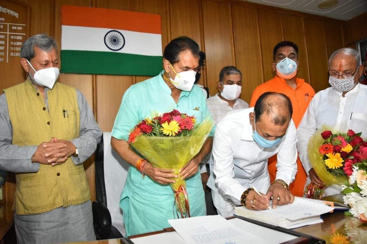 देहरादून | मुख्यमंत्री तीरथ सिंह रावत ने विधानसभा में सल्ट विधानसभा क्षेत्र के नव निर्वाचित विधायक महेश जीना के शपथ ग्रहण कार्यक्रम में प्रतिभाग किया। विधानसभा अध्यक्ष प्रेमचन्द अग्रवाल ने महेश जीना को शपथ दिलाई। इस अवसर पर कैबिनेट मंत्री सतपाल महाराज, बंशीधर भगत, गणेश जोशी, राज्य मंत्री डॉ. धन सिंह रावत एवं विधायकगण उपस्थित थे।