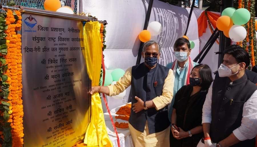 नैनीताल | मुख्यमंत्री त्रिवेन्द्र सिह रावत ने सोमवार को अपने एक दिवसीय नैनीताल भ्रमण के दौरान नैनीझील में एक करोड की लागत से यूनडीपी के सहयोग से स्थापित दिव्य नैनीझील जल गुणवत्ता आंकलन प्रणाली का लोकापर्ण वैदिक मंत्रों के बीच किया। कार्यक्रम को सम्बोधित करते हुये मुख्यमंत्री रावत ने कहा कि नैनीझील अपनी प्राकृतिक सुन्दरता के लिए दुनिया भर मे जानी जाती है व सदैव से ही पर्यटकों को आकर्षित करती रही है। उन्होने कहा नैनीझील हमारी सांस्कृतिक विरासत का एक अभिन्न अंग है। उन्होने जिला प्रशासन व यूएनडीपी को इस अभिनव पहल के लिए बधाई दी साथ ही उन्होने सभी से नैनीझील को स्वस्थ व स्वच्छ रखने की अपील भी की। उन्होने कहा कि जल गुणवत्ता प्रणाली जल संरक्षण के साथ ही जल की निर्मलता बनाये रखेगी। प्रदेश में जल संरक्षण एवं संवर्धन के लिए प्रदेश की नदियों,झीलों तालाबों और जलस्रोतो को पुर्नजीवित करने के लिए व्यापक जन अभियान शुरू किया गया है, जिसमे सफलता मिली है। कोसी, गगास, रिस्पना, शिप्रा मे व्यापक वृक्षारोपण किया गया है। सौंग व जमरानी बांध बनने से 125 करोड की बिजली बचत होगी। उन्होने कहा अल्मोडा मे तडागताल पुर्नजीवन एवं संरक्षण हेतु 10 करोड रूपये जारी कर दिये गये है। मुख्यमंत्री ने कहा कि उत्तराखण्ड पर्यटन प्रदेश है। यहां अतिथि देव भवः के साथ ही स्थानीय उत्पाद व स्थानीय भोजन को बढावा देना होगा। उन्होने कहा कि प्रदेश मे होम स्टे को प्रोत्साहित किया जा रहा है। प्रदेश मे अब तक 2200 होम स्टे संचालित है इनको और बढाया जायेगा। उन्होने कहा कि स्थानीय शिल्प को प्रोत्साहित करने हेतु सरकार ने आवास नीति के तहत स्थानीय शिल्प मे बनाये जा रहे भवन में एक और मंजिल बनाने की स्वीकृति दी जा रही है। मुख्यमंत्री ने कहा कि नैनीताल में एसटीपी व पार्किग को बनाये जाने हेतु स्वीकृति दे दी गई है। बलिया नाले पर अल्पकालीन व दीर्घकालीन दोनो योजनाओं पर कार्य किया जा रहा है। उन्होेने कहा रैमजे चिकित्सालय को पीपीपी मोड पर चलाये जाने हेतु शीघ्र विज्ञप्ति जारी की जायेगी ताकि यहा की जनता व आने वाले पर्यटको को और बेहतर स्वास्थ्य सुविधायें मिल सके। क्षेत्रीय विधायक संजीव आर्य ने जनपद आगमन पर मुख्यमंत्री का धन्यवाद अदा करते हुये जिला प्रशासन द्वारा किये जा रहे कार्यो की तारीफ की। उन्होने सरकारी द्वारा किये जा रहे विकास कार्यो की विस्तृत जानकारी देते हुये ऐतिहासिक रैमजे चिकित्सालय नैनीताल को पीपीपी मोड पर चलाने की मांग रखी ताकि जनता व पर्यटकों को और बेहतर स्वास्थ्य सुविधायें मिल सके। उन्होेने बताया कि नारायण नगर में पार्किग हेतु 25 बीघा भूमि आवंटित हो चुकी है साथ ही रानीबाग से हनुमानगढी रोपवे का प्रस्ताव भी गतिमान है।  अप