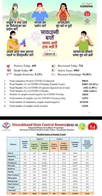 उत्तराखंड : प्रदेश में कोरोना मरीजों की संख्या पहुँची 90 हजार पार, जानिए खबर