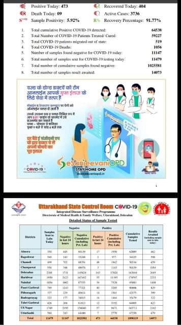 उत्तराखंड : प्रदेश में कोरोना मरीजो की संख्या पहुँची 64538, जानिए खबर