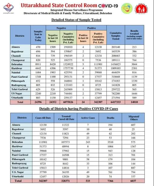 उत्तराखंड : सबसे कम कोरोना एक्टिव केस हरिद्वार में 8, अल्मोड़ा में 7, टिहरी में केवल 3, जानिए खबर