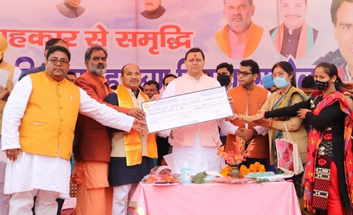 खटीमा | मुख्यमंत्री पुष्कर सिंह धामी द्वारा रविवार को खटीमा के रामलीला मैदान में सहाकारिता समूह ऋण वितरण समारोह में प्रतिभाग किया। इस अवसर पर मुख्यमंत्री द्वारा 10 स्वयं सहायता समूहों को विभिन्न व्यवसाय हेतु 05-05 लाख तक तथा मुख्यमंत्री स्वरोजगार योजना तथा दीन दयाल उपाध्याय योजना के तहत लाभार्थियों को चैक प्रदान किये गये। मुख्यमंत्री ने कहा स्वयं सहायता समूहों को स्वावलम्बी बनाने के उद्देश्य से 119 करोड़ का पैकेज राज्य सरकार द्वारा दिया गया है। स्वयं सहायता समूहो को 05 लाख तक ऋण बिना ब्याज के वितरित किये जा रहे हैं। समूहां के 06 महीने की ऋण प्रतिपूर्ति का ब्याज सरकार द्वारा दिया जायेगा। मुख्यमंत्री ने कहा कि यह दशक उत्तराखण्ड का दशक होगा। मुख्यमंत्री ने कहा की सरकार द्वारा समाज के हर वर्ग को ध्यान में रखते हुए योजनाएं चलाई जा रही हैं।