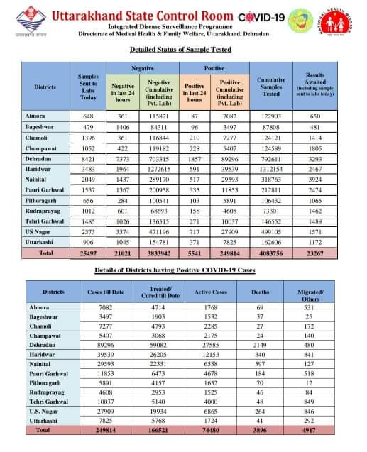 उत्तराखंड 10 मई 2021: प्रदेश में आज ठीक हुए 4887 कोरोना मरीज , जानिए खबर