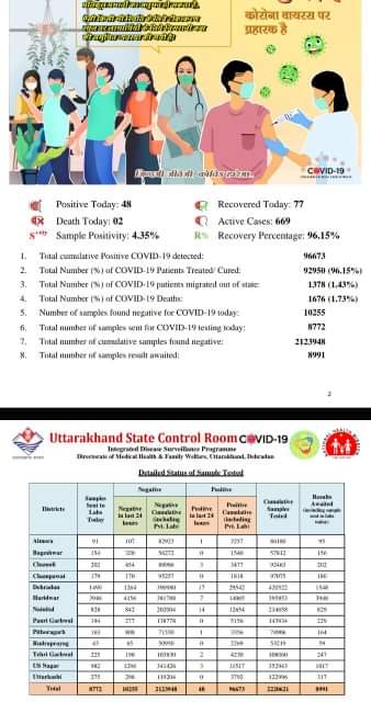 उत्तराखंड 11 फरवरी : आज प्रदेश में 7135 लोगो को लगा कोरोना टीका, आज मिले 48 मरीज , जानिए खबर