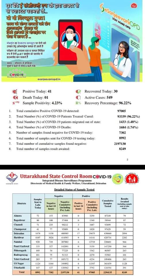 उत्तराखंड 18 फरवरी : आज आठ जिलो में कोरोना के कोई मरीज नही मिले, जानिए खबर