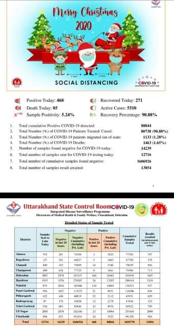 उत्तराखंड 25 दिसम्बर : प्रदेश में आज कोरोना के 468 नए मामले मिले , जानिए खबर