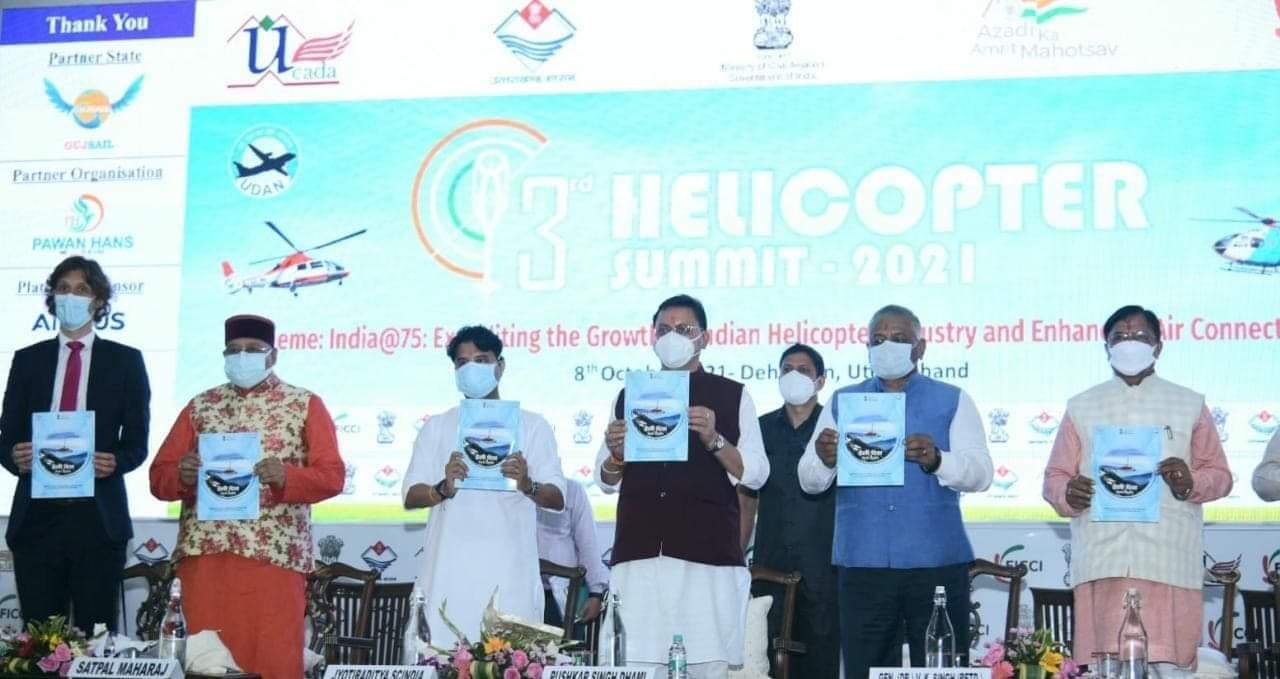 देहरादून | नागरिक उड्डयन मंत्रालय, भारत सरकार और उत्तराखण्ड सरकार द्वारा तीसरी हेलीकाप्टर समिट-2021 का आयोजन किया गया। इसकी थीम इंडिया@75 भारतीय हेलीकाप्टर उद्योग के विकास में तेजी लाना और वायु सम्पर्क बढ़ाना था। केंद्रीय नागर विमानन मंत्री ज्योतिरादित्य एम. सिंधिया ने कहा कि भारत का विकास सभी राज्यों के सहयोग से मुमकिन है। उन्होंने कहा उत्तराखंड सरकार हमेशा विकास में अपना योगदान देने हेतु तत्पर रहती है। उन्होंने कहा केंद्र में प्रधानमंत्री नरेंद्र मोदी के विजन एवं राज्य में युवा नेतृत्व से उत्तराखंड का विकास तेजी से हो रहा है। उन्होंने कहा विभिन्न दुर्गम क्षेत्रों में हर छोटी बड़ी सुविधा पहुंचाने हेतु हेलीकॉप्टर का योगदान रहता है। उन्होंने कहा हमने भारत में हेलीकॉप्टरों की संख्या बढ़ाने पर जोर दिया है। ताकि ज्यादा से ज्यादा लोग इसका लाभ ले सकें। उन्होंने कहा आज मुख्यमंत्री और मैंने संयुक्त रूप से उत्तराखंड के विभिन्न जगहों के लिए हेलीकॉप्टर सेवा शुरू की है इससे निश्चित रूप से जनता को लाभ मिलेगा। साथ ही उन्होंने प्रदेश सरकार द्वारा उत्तराखण्ड में एवियेशन टर्बो फ़्यूल (एटीएफ) में लगने वाले वेट को 20 प्रतिशत से घटाकर 2 परसेंट किए जाने पर मुख्यमंत्री को धन्यवाद कहा। नागरिक उड्डयन मंत्रालय में हेलीकाप्टर एक्सीलेटर सैल की स्थापना करने और देश में हेलीकाप्टर कोरिडोर विकसित किए जाने की बात कही गई। कार्यक्रम में नागरिक उड्डयन मंत्रालय की वेबसाईट पर हेली सेवा पोर्टल का बीटा वर्जन लांच किया गया। साथ ही सिविल हेलीकाप्टर आपरेशन के दिशानिर्देश के लिए हेली दिशा नामक पुस्तिका का विमोचन किया गया। साथ ही हेलीकाप्टर आपरेशन के प्रोत्साहन के लिए नीति और हेली इमरजेंसी मेडिकल सर्विसेज का रोड मैप भी जारी किये गये। समिट में प्रतिभाग करते हुए मुख्यमंत्री पुष्कर सिंह धामी ने कहा कि आज का दिन हमारे लिए बड़ा महत्वपूर्ण दिन है। प्रधानमंत्री जी की सोच है कि देश का सामान्य नागरिक भी हवाई सेवा का लाभ उठाए। मुख्यमंत्री ने प्रदेश में नई हेली सेवाओ का शुभारंभ करने पर विमानन मंत्री ज्योतिरादित्य सिंधिया का धन्यवाद करते हुए कहा कि आम जनता भी हेलीकॉप्टर का लाभ ले सके इस पर हमारी सरकार कार्य कर रही है। उन्होंने कहा हम सरलीकरण, समाधान और निस्तारण के मंत्र के साथ हेलीकॉप्टर कनेक्टिविटी के क्षेत्र में भी कार्य करेंगे। उन्होंने कहा हेलीकॉप्टर सेवाओं को बढ़ावा देने से संबंधित आने वाली हर समस्या का समाधान करने के लिए हमारी सरकार तैयार है। उन्होंने कहा हमारी सरकार कम दामों पर जनता को हेली सुविधा देने पर कार्य कर रही है। मुख्यमंत्री पुष्कर सिंह धामी ने कहा कि प्रदेश में पर्यटन को बढ़ावा देने