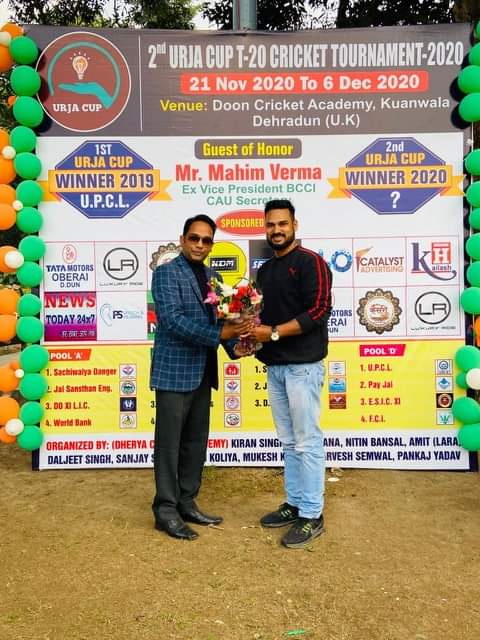 देहरादून | आज दिनांक 24 नवम्बर 2020 को देहरादून में कुआँवाला स्थित दून क्रिकेट एकेडमी के मैदान में द्वितीय ऊर्जा कप 2020 टी ट्वेंटी क्रिकेट प्रतियोगिता के चौथे दिन के पहला मैच PWD इंजीनियर और सीएम हाउस के बीच खेला गया |