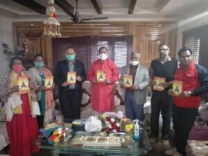 देहरादून | भारतीय जैन मिलन केंद्रीय महिला संयोजिका मधु जैन ने जानकारी देते हुए बताया कि आज भारतीय जैन मिलन के राष्ट्रीय महामंत्री नरेश चंद्र ने भारतीय जनता पार्टी के राज्यसभा के सांसद नरेश बंसल से भगवान महावीर संदेश पत्रिका का विमोचन कराया जो जैन समाज के स्वर्णिम इतिहास में पहली बार भारतीय जन्मदिन द्वारा भारतीय जैन मिलन द्वारा पूरे भारतवर्ष में जैन धर्म के भगवान महावीर के 2547 वे निर्माण दिवस पर उनके संदेशों को घर घर पहुंचाने के लिए ऐतिहासिक वर्चुअल भगवान महावीर रैली जो फेसबुक एवं जिनवाणी चैनल यु ट्यूब से सीधा प्रसारण किया जाएगा जिसमें आज घर-घर महावीर संदेश पत्रिका वितरण कार्यक्रम का शुभारंभ किया गया इस रैली के माध्यम से ढाई लाख लोगों को इस रैली से जोड़ने का आह्वान किया गया है जैन परंपरा में तीर्थंकरों का स्थान सर्वोपरि है इस अवसर पर भारतीय जैन मिलन के राष्ट्रीय महामंत्री नरेश चंद जैन ने कहा कि इसका मुख्य उद्देश्य भगवान महावीर का संदेश हर घर तक पहुंचे और उनका जीवन परिचय सभी परिचित हो इसलिए हर घर घर भगवान महावीर का पाठ संदेश जियो और जीने दो पहुंचे और उनका जीवन परिचय सभी के संज्ञान में आए । इस अवसर पर के मंत्री डॉ संजीव जैन क्षेत्रीय कार्यकारी अध्यक्ष संदीप जैन मानवाधिकार चेयरमैन सचिन जैन स्वराज विद्वान आदि लोग उपस्थित रहे।