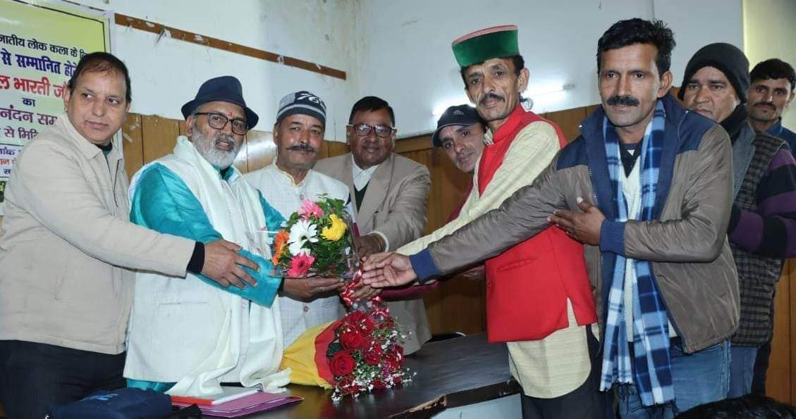 देहरादून। जौनसार बावर के प्रसिद्ध लोक कलाकार डॉ. नंद लाल भारती को अंतर्राष्ट्रीय स्तर का ‘कला सारथी’ पुरस्कार से सम्मानित होने पर उन्हें आज उत्तरांचल प्रेस क्लब में जौनसार बावर महासभा और प्रेस क्लब ने संयुक्त रूप से सम्मानित किया। यह पुरस्कार डॉ. भारती को 26 जनवरी को बैंगलोर (कर्नाटक) में 180 देशों के प्रतिनिधियों और करीब ढाई लाख लोगों की मौजूदगी ने दिया गया।