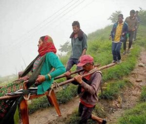बीमार छाचरी देवी को डंडी कंडी से पहुंचाया सड़क तक, जानिए खबर