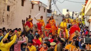 श्रद्धालुओं ने पुष्पवर्षा कर किया नागा सन्यासियों का स्वागत