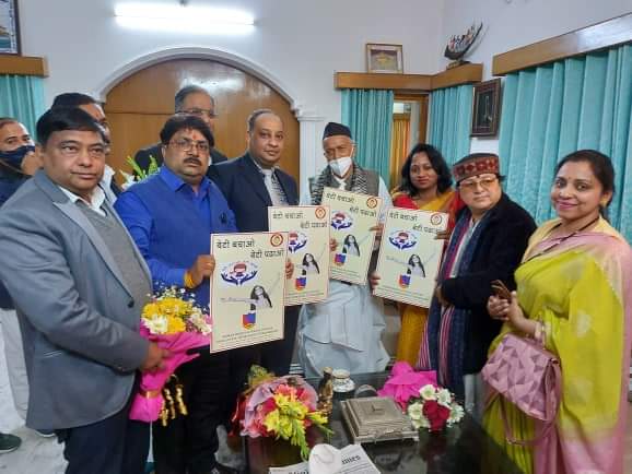 देहरादून | आज मानवाधिकार एवं सामाजिक न्याय संगठन द्वारा महाराष्ट्र के राज्यपाल भगत सिंह कोश्यारी के कर कमलों द्वारा बेटी बचाओ बेटी पढ़ाओ के पोस्टर का विमोचन संगठन के चेयरमैन सचिन जैन द्वारा कराया गया जिसमें प्रदेश अध्यक्ष मधु जैन प्रदेश उपाध्यक्ष लच्छू गुप्ता , कानूनी सलाहकार राजकुमार तिवारी , गीता रावत , मंजू नेगी, वीरेंद्र रावत मौजूद रहे इस अवसर पर राज्यपाल भगत सिंह कोश्यारी ने संगठन द्वारा किए जा रहे कार्यों की सराहना करते हुए कहा कि आप लोगों के द्वारा किए गए कार्यों से सभी लाभान्वित हुए हैं और संगठन निरंतर जन सेवा के कार्य करता रहता है इस अवसर पर संगठन के चेयरमैन सचिनने उनका आभार जताया और कहा कि हमारा संगठन निरंतर सभी के हित में लगातार हर क्षेत्र में जाकर कार्य कर रहा है और करता रहेगा जिसमें सभी संगठन के पदाधिकारियों सदस्यों का पूर्ण सहयोग रहता है