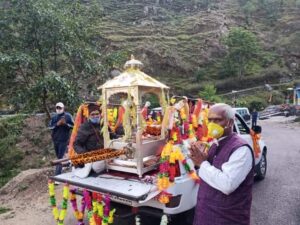 उखीमठ | बाबा केदारनाथ भगवान की पंचमुखी डोली आज श्री ओंकारेश्वर मंदिर उखीमठ से सादगीपूर्वक केदारनाथ धाम को प्रस्थान हुई। इस अवसर पर रावल भीमाशंकर लिंग, पुजारी बागेश लिंग, देवस्थानम बोर्ड के अपरमुख्य कार्यकारी अधिकारी बी.डी. सिंह , कार्याधिकारी एनपी जमलोकी, डोली प्रभारी यदुवीर पुष्पवान सहित प्रशासन के अधिकारी मौजूद रहे। कल केदारनाथ पहुंचेगी। देवस्थानम बोर्ड के मीडिया प्रभारी डा. हरीश गौड़ ने बताया कि 17 मई को प्रात:पांच बजे श्री केदारनाथ धाम के कपाट खुलेंगे। चारधाम यात्रा स्थगित है अत: कोरोना महामारी को देखते हुए केवल मंदिरों के कपाट खुल रहे है। पूजापाठ से जुड़े कुछ ही लोगों को धामों में जाने की अनुमति दी गयी है। आज दिन में 12.15 बजे श्री यमुनोत्री धाम के कपाट खुलेंगे। जबकि कल 15 मई गंगोत्री धाम एवं 18 मई प्रात: को श्री बदरीनाथ धाम के कपाट खुल रहे है।