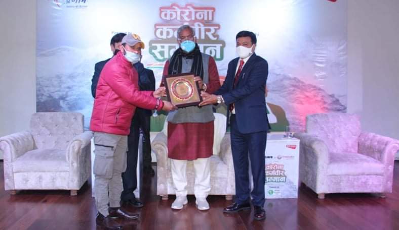 कार्यक्रम में नर्सिंग ऑफिसर शिवानी, रामेश्वरी के साथ ही कोविड के दौरान सराहनीय कार्य करने वाले प्यार सिंह, कृष्णा प्रसाद एवं स्वास्थ्य, पूलिस, प्रशासन एवं सामाजिक क्षेत्र में कार्य करने वालों को सम्मानित किया गया। मुख्यमंत्री त्रिवेन्द्र सिंह रावत ने कहा कि जिन कोरोना कर्मवीरों को सम्मान दिया जा रहा है, उन्होंने कोविड काल में अपनी जिम्मेदारी को सामाजिक जिम्मेदारी मानव सेवा समझकर कार्य किया। ऐसे अनेक लोगों ने इस दौरान सराहनीय कार्य किया। उन्होंने कहा कि आज देश कोरोना के संकट से तेजी से उभर रहा है। किसी भी समस्या के समाधान के लिए जागरूकता का होना बहुत जरूरी है। देश एवं प्रदेश में कोरोना के प्रभावी नियंत्रण में जन जागरूकता की महत्वपूर्ण भूमिका रही है। मुख्यमंत्री त्रिवेन्द्र ने कहा कि 15 मार्च 2020 को उत्तराखण्ड में कोरोना का पहला मामला आया था। कोविड के दौरान जनहित में कड़े निर्णय भी लेने पड़े। इसके परिणामस्वरूप राज्य आज कोविड को नियंत्रित करने की स्थिति में हैं। कोविड के दौरान राज्यवासियों का सरकार को पूरा सहयोग मिला। गरीबों एवं असहायों की मदद के लिए अनेक लोग आगे आये। हमारे वैज्ञानिकों के अथक प्रयासों से आज भारत में वैक्सीन ही नहीं बन रही है, बल्कि दुनियां के 20 देशों को भारत वैक्सीन दे रहा है। वसुधैव कुटुम्बकम की भारत की जो सोच रही है, उस दिशा में कार्य हो रहा है। कोविड के दौरान हमारे अनेक स्वास्थ्य कर्मियों ने अपना बलिदान दिया। इस अवसर पर ग्राफिक एरा विश्वविद्यालय के चांसलर प्रो. कमल घनसाला, वरिष्ठ पत्रकार संजय अभिज्ञान, ग्राफिक एरा विश्वविद्यालय के कुलपति डॉ. आर. के शर्मा, आर.जे. काव्य आदि उपस्थित रहे।