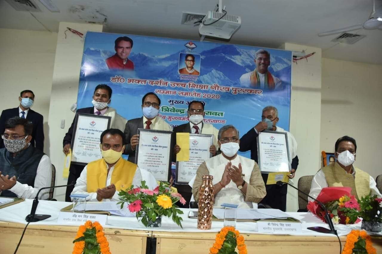 सीएम त्रिवेंद्र ने उत्कृष्ट योगदान देने वाले चार शिक्षकों को किये सम्मानित