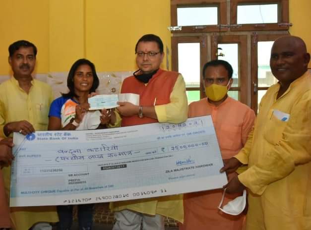सीएम पुष्कर सिंह धामी ने खिलाड़ी वंदना कटारिया को किया सम्मानित