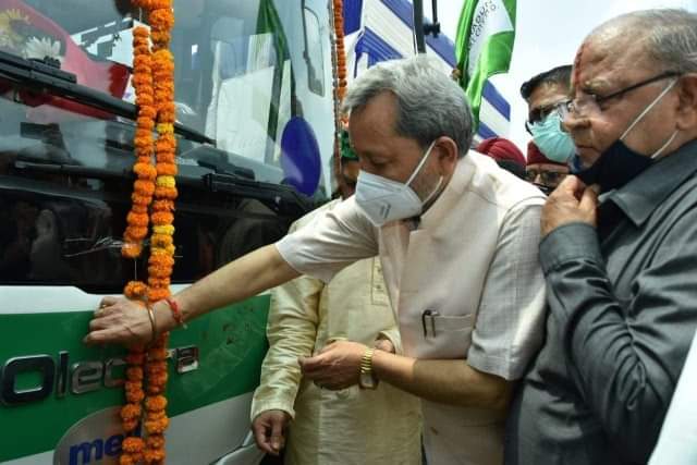 स्मार्ट सिटी के अंर्तगत इलेक्ट्रिक बसों का हुआ संचालन, सीएम तीरथ ने दिखाई हरी झण्डी