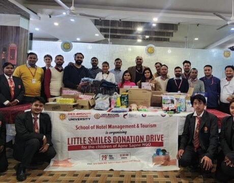 यूनिवर्सिटी के स्कूल ऑफ़ होटल मैनेजमेंट विभाग द्वारा सराहनीय पहल देहरादून | अपने सपने एनजीओ सुभाषनगर स्थित संस्था प्रांगण में जरूरतमंद बच्चों के लिए “लिटिल स्माइल” नामक कार्यक्रम का आयोजन देवभूमि उत्तराखंड यूनिवर्सिटी के स्कूल ऑफ़ होटल मैनेजमेंट विभाग द्वारा किया गया | इस अवसर पर स्कूल ऑफ़ होटल मैनेजमेंट विभाग के छात्र छात्राओं द्वारा अपने सपने एनजीओ के बच्चों से रूबरू हुए वही बच्चों के साथ खेल- कूद , गीत-संगीत एवम् जीवन में शिक्षा के महत्त्व को लेकर जानकारियां दी गयी | इस आयोजन पर बच्चों को शिक्षण समाग्री में स्कूल बैग, कॉपी, पेन पेन्सिल, बॉक्स, टिफिन आदि का…