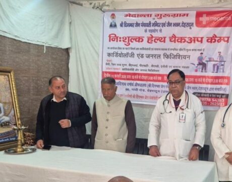 देहरादून | श्री दिगम्बर जैन पंचायती मन्दिर एवं जैन भवन, देहरादून एवं मेदान्ता गुरूग्राम के सहयोग से निःशुल्क हेल्थ चैकअप कैम्प का आयोजन 60 गांधी रोड स्थित जैन धर्मशाला में किया गया कार्यक्रम की शुरुआत दीप प्रज्वलंकर सभी डॉक्टर का सम्मान करने के पश्चात कैंप प्रारंभ किया गया जिसमें कार्डियोलॉजी एवं सामान्य स्वास्थ्य से सम्बन्धित जाँच निःशुल्क की गई ।जिसमें कार्डियोलॉजी एंड जनरल फिजिशियन में डॉक्टर परामर्श डॉक्टर एस के तनेजा (कार्डियोलॉजिस्ट )डॉ मयंक सिंह (फिजिशियन )अमित भगत, राजेंद्र चमोली ( मैनेजर,मार्केटिंग)टीना, आरती (नर्सिंग) विशाल (बीएमडी टेक्नीशियन) सचिन (पीएफटी टेक्नीशियन) ने अपनी निशुल्क सेवाएं दी। कैंप में बीपी, रैंडम ब्लड…