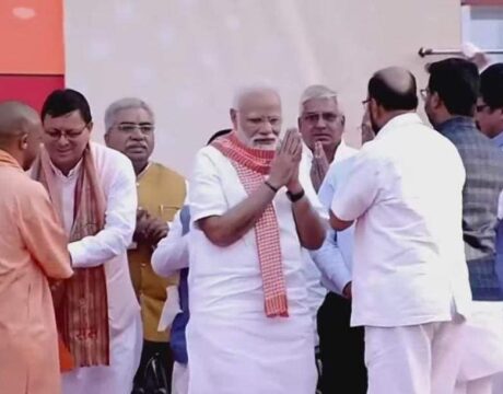 सीएम पुष्कर सिंह धामी योगी आदित्यनाथ के शपथ ग्रहण समारोह में हुए शामिल