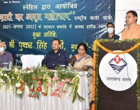 देहरादून | मुख्यमंत्री पुष्कर सिंह धामी ने मंगलवार को मुख्यमंत्री आवास स्थित जनता दर्शन हॉल में स्नेहिल संस्था द्वारा आयोजित आजादी का अमृत महोत्सव राष्ट्रीय कला यात्रा के उद्घाटन समारोह में मुख्य अतिथि के रूप में प्रतिभाग किया। इस अवसर पर मुख्यमंत्री ने स्नेहिल स्मारिका का विमोचन भी किया गया। मुख्यमंत्री पुष्कर सिंह धामी ने कहा कि आजादी के अमृत महोत्सव के तहत स्नेहिल संस्था द्वारा शहीदों एवं क्रांतिकारियों का कला एवं साहित्यिक गतिविधियों द्वारा स्मरण किया जा रहा है, यह एक सराहनीय प्रयास है। मुख्यमंत्री ने कहा कि कला, साहित्य एवं संस्कृति मानव जीवन के अभिन्न अंग हैं।…