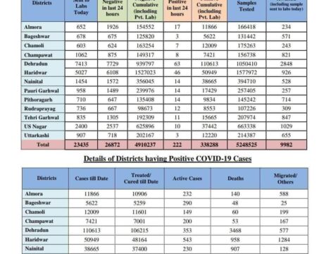 उत्तराखंड 18 जून : प्रदेश के 11 जिलो में आज 20 से कम मिले कोरोना मरीज , जानिए खबर