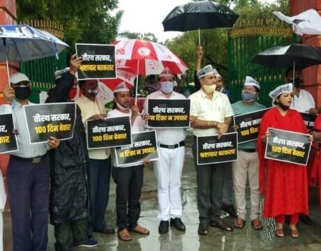 देहरादून । मुख्यमंत्री तीरथ सिंह रावत के 100 दिनों के असफल कार्यकाल को लेकर आज आम आदमी पार्टी ने प्रदेश की सभी 70 विधानसभा क्षेत्रों में तीरथ सरकार के खिलाफ जोरदार प्रदर्शन किया। इसी के तहत, देहरादून में आज आम आदमी पार्टी के सैकड़ों कार्यकर्ता, गांधी पार्क से लेकर घंटाघर तक,सरकार के खिलाफ जमकर नारेबाजी और प्रदर्शन करते हुए निकले। आप कार्यकर्ताओं ने सरकार के 100 दिनों की विफलता पर जमकर नारेबाजी की इस दौरान आप कार्यकर्ताओं ने विरोध स्वरूप काली पट्टी बांधकर सरकार के खिलाफ अपना विरोध जताया। आप उपाध्यक्ष के नेतृत्व में सभी आप पदाधिकारी और कार्यकर्ता गांधी…