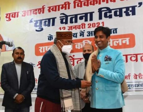 डा. कुमार विश्वास, कविता तिवारी, राजीव राज, रमेश मुस्कान और तेजनारायण शर्मा ‘बेचैन’ ने अपनी कविताओं से समां बांधा देहरादून | स्वामी विवेकानंद जी की जयंती के अवसर पर जनता दर्शन हाॅल, मुख्यमंत्री आवास में आयोजित ‘राष्ट्रभक्ति कवि सम्मेलन’ में कवि डा. कुमार विश्वास, कविता तिवारी, राजीव राज, रमेश मुस्कान और तेजनारायण शर्मा ‘बेचैन’ ने अपनी कविताओं से समां बांध दिया। कोविड प्रोटोकाॅल का पालन करते हुए सीमित संख्या में आमंत्रित किए गए लोगों के बीच राष्ट्र, संस्कृति, सेना की वीरता, मातृ शक्ति सहित विभिन्न विषयों पर काव्य प्रस्तुतियां की गईं। डा. कुमार विश्वास ने अपने अंदाज में कवि…