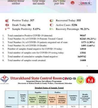 उत्तराखंड 29 दिसम्बर : प्रदेश में आज मिले कोरोना के 317 मरीज, जानिए खबर