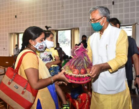 कुपोषण मुक्त बच्चों के अभिभावकों को सीएम त्रिवेंद्र ने किया सम्मानित