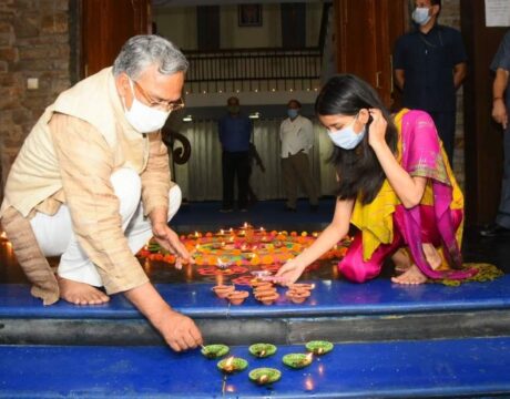 सीएम त्रिवेन्द्र सिंह रावत अपने आवास में जलाए दिये, जानिए खबर