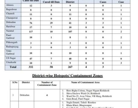 उत्तराखंड : राज्य में कोरोना मरीजो की संख्या 332 हुई