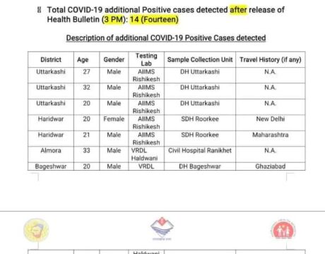 कोरोना अपडेट : उत्तराखंड में कोरोना पॉजिटिव मरीजो की संख्या हुई 146