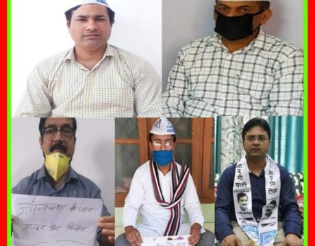 श्रम कानून में बदलाव पर आम आदमी पार्टी ने दिया धरना