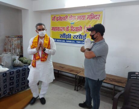 देहरादून | मां बृजेश्वरी जोगमाया मंदिर समिति एवं महाकाल के दीवाने संस्था द्वारा चलाई जा रही सांझी रसोई का निरीक्षण करने पहुंचे महापौर देहरादून सुनील उनियाल गामा इस अवसर पर उन्होंने चल रहे समाजिक कार्यों का जायजा अध्यक्ष रोशन राणा से लिया इस अवसर पर महापौर को एवं मां बृजेश्वरी योग माया समिति एवं महाकाल के दीवाने संस्था को श्री खाटू श्याम समिति द्वारा सम्मानित किया गया। इस अवसर पर सोशल डिस्टेंसिंग का पूरा ध्यान रखा गया और महापौर के द्वारा दिए गए दिशा निर्देशों का पालन भी किया गया।