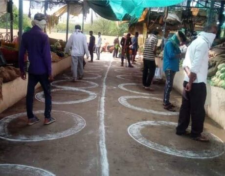 फल, सब्जी, राशन, दवा की दुकानों, गैस एजेंसियों पर कराया जा रहा सोशल डिस्टेंसिंग का कड़ाई से पालन