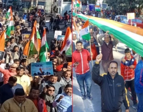 देहरादून । नागरिकता संशोधन कानून (सीएए) का देशभर में हो रहे विरोध के बीच देहरादून में रविवार को भाजपा और हिंदू संगठनों ने इसके समर्थन में तिरंगा यात्रा रैली निकाली। इस दौरान सैकड़ों की संख्या में पार्टी कार्यकर्ताओं की भीड़ जुटी। भाजपा कार्याकर्ताओं की शक्ति प्रदर्शन रैली में भीड़ जुटने से सड़कों पर चारों तरफ जाम लगा रहा। रैली परेड मैदान से चलकर एस्लेहॉल से होते हुए गांधी पार्क और पल्टन बाजार पहुंची। यहां प्रदेश अध्यक्ष अजय भट्ट के नेतृत्व में कार्यकर्ताओं ने पीएम मोदी, सीएम योगी और अमित शाह के समर्थन में खूब नारे लगाए। प्रदेश अध्यक्ष अजय भट्ट…