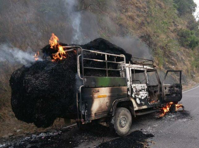 देहरादून : पराली से भरे पिकअप में लगी भीषण आग, दो लोगों ने कूदकर बचाई जान