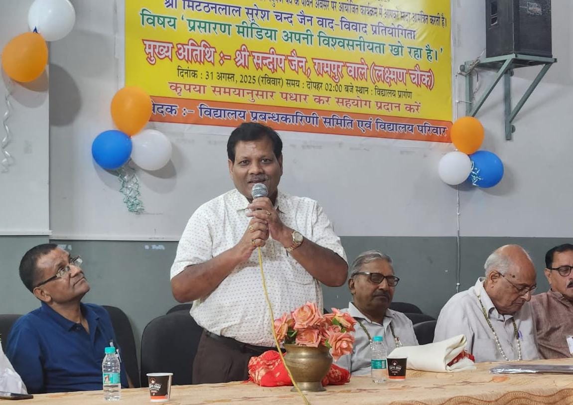 अपना-अपने काम आ जाए, वहीं शौच धर्म है। तुम किसी के दास (आधीन) नहीं रहना चाहते तो किसी के दास (आधीन) नहीं बनाऊंगा-तो शौच धर्म जीवन में आ जाएगा।आज दोपहर श्री वर्णी जैन विद्यालय में श्री मिट्ठन लाल सुरेश चंद वाद विवाद प्रतियोगिता का आयोजन किया गया। जिसका विषय:- “प्रसारण मीडिया अपनी विश्वनियता खो रहा है” रहा।संध्याकालीन बेला में महिला जैन मिलन द्वारा ‘भरत बाहुबली’ नाटिका का सुंदर मंचन किया गया।