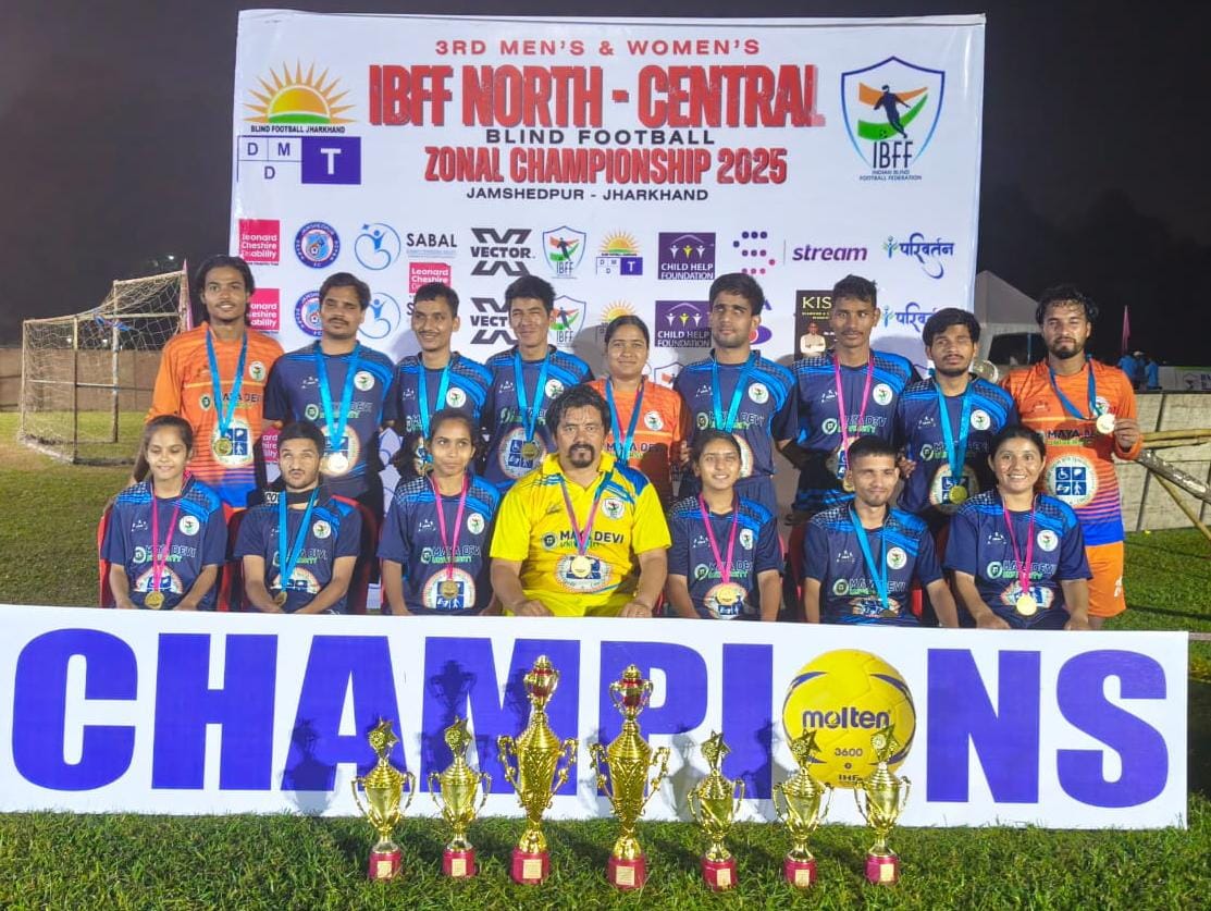 देहरादून | दोनों ही टीमों ने आईं बी एफ एफ नॉर्थ सेंट्रल जोन ब्लाइंड फुटबॉल टूर्नामेंट जीते।झारखंड के जमशेदपुर शहर में 1 से 3 नवंबर 2025 तक चली प्रतियोगिता में दोनों ही टीमों ने खिताब अपने नाम किए।महिला टीम की कप्तान शेफाली रावत ने टीम को जीत दिलाने किले साथ साथ दो ट्रॉफीज भी अपने नाम की।शेफाली ने कुल 21 गोल कर के गोल्डन बूट जीता और साथ ही प्लेयर ऑफ द टूर्नामेंट का खिताब भी जीता।साथ ही महिला टीम में स्मिता रावत ने बेस्ट गोलकीपर का अवॉर्ड जीता।उनका यह पहला टूर्नामेंट भी था।पुरुष टीम की कप्तानी शिवम् सिंह नेगी कर रहे थे।पुरुष टीम में सोवेंद्र भंडारी बने प्लेयर ऑफ द टूर्नामेंट और साहिल 27 गोल कर के गोल्डन बूट का खिताब अपने नाम करने में कामयाब रहे।पुरुषों ने फाइनल में दिल्ली को रोमांचक मुकाबले में पेनल्टी शूटआउट में 2-1 से पराजित किया।महिलाओं में पश्चिम बंगाल को 3-0 से पराजित किया।उत्तराखंड की महिला और पुरुष की टीम्स ने इस टूर्नामेंट में कुल 80 गोल्स दागे जो कि अब तक किसी भी टूर्नामेंट में सबसे अधिक है।विशेष यह था कि महिला टीम से काफी गोल देखने को मिले।शेफाली ने 21 गोल किए और शीतल ने 2 गोल।इस तरह से कुल 23 गोल किए जो कि किसी भी टीम के द्वारा सबसे अधिक हैं।दोनों हो टीम्स को यू बी एस ए उत्तराखंड ब्लाइंड स्पोर्ट्स एसोसिएशन की तरफ से टूर्नामेंट में भेजा गया था।खिताब जीतने पर यू बी एस ए के अध्यक्ष श्री अनंत प्रकाश मेहरा ने दोनों ही टीमों को बधाइयां दी हैं और कहा है कि बोर्ड आने वाले समय में भी अपने खिलाड़ियों की हर प्रकार से सहायता करती रहेगी।श्री अनंत प्रकाश मेहरा ने यह भी कहा कि टीम्स के वापस देहरादून लौटने पर भव्य स्वागत समारोह भी किया जाएगा।महिला टीम में..शेफाली रावत(कप्तान),शीतल कुमारी(उप कप्तान),तनुजा परमार,अनुष्का दुबे तथा स्मिता रावत (गोलकीपर)।कोच नरेश सिंह नयाल,गोल गाइड दीपांशु पालीवाल।पुरुष टीम…शिवम सिंह नेगी (कप्तान), सोवेंद्र भंडारी (उपकप्तान), साहिल, हिमांशु पाल,राजेश,निखिल,नमन,गोलकीपर आदित्य सजवान।कोच नरेश सिंह नयाल तथा गोल गाइड दीपक सिंह रावत।