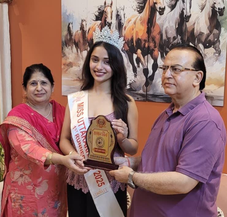 डोईवाला | उत्तराखंड की बेटियों ने हर क्षेत्र में अपनी पहचान बनानी शुरू कर दी है और इस बार एक और चमकते सितारे के रूप में वैष्णवी लोहनी ने अपना स्थान बनाया है। देहरादून में सिनमिट कम्युनिकेशंस द्वारा आयोजित ‘मिस उत्तराखंड-2025’ के ग्रैंड फिनाले में वैष्णवी ने द्वितीय स्थान (फर्स्ट रनरअप) प्राप्त कर न केवल उत्तराखंड का नाम रोशन किया, बल्कि अपनी सुंदरता, आत्मविश्वास, और परिश्रम से एक मिसाल भी पेश की। इसके साथ ही उन्होंने ‘मिस फोटो जेनिक’ और ‘मिस अल्मोड़ा’ का खिताब भी जीते, जो उनकी बहुमुखी प्रतिभा का प्रतीक है। उनकी इस सफलता के बाद साईं सृजन पटल कार्यालय ने उनका भव्य स्वागत किया, जहां उन्हें प्रो. के.एल. तलवाड़ ने सम्मान चिन्ह भेंट कर उनके उज्ज्वल भविष्य के लिए शुभकामनाएं दीं।