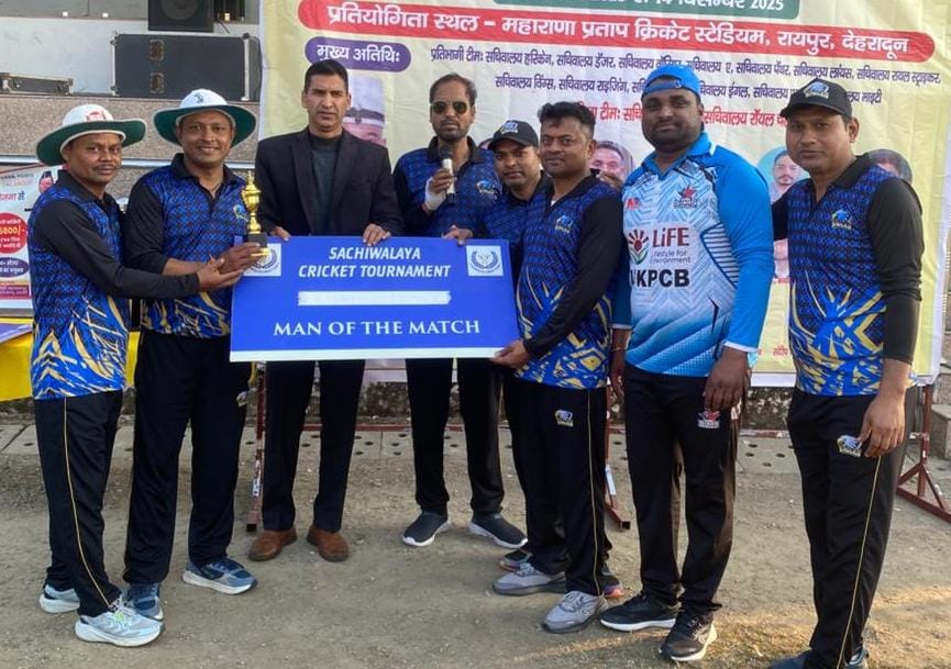देहरादून | मोनाल कप 2025 में 09.12.2025 को महाराणा प्रताप क्रिकेट ग्राउंड में दो मैच खेले गए। पहला मैच सचिवालय हरिकेन और लायंस के बीच खेला गया। हरिकेन की टीम ने पहले खेलते हुए कुल 20 ओवरों में 09 विकेट पर 139 रन बनाए। विनोद शर्मा ने 43 और ओमीश कुमार ने 31 रन बनाए। माधव नौटियाल ने 03 विकेट लिए। लक्ष्य का पीछा करने उतरी लायंस की टीम 95 रनों पर ऑल आउट हो गई। माधव नौटियाल ने 30 और धीरेन्द्र सिंह ने 22 रन बनाए। ओमीश ने 04 और सुनील ने 03 विकेट लिए। इस तरह सचिवालय हरिकेन ने मैच 44 रन से जीत लिया। ओमीश कुमार को मैन ऑफ द मैच दिया गया।दूसरा मैच सचिवालय ईगल्स एवं सचिवालय राइजिंग के बीच खेला गया। ईगल्स की टीम ने पहले खेलते हुए 20 ओवरों में 05 विकेट पर 183 रन बनाए। भूपेंद्र बिष्ट ने 63 और सुशील ने 61 रन बनाए। अजय सिंह ने 02 विकेट लिए। लक्ष्य का पीछा करने उतरी राइजिंग की टीम कुल 171 रन ही बना सकी। शुभम ने 52 रन बनाए। हिमांशु नेगी ने 02 विकेट लिए। इस तरह सचिवालय ईगल्स ने मैच 12 रन से जीत लिया। सुशील मैन ऑफ द मैच बने।कल से क्वार्टर फाइनल मैच शुरू होंगे।